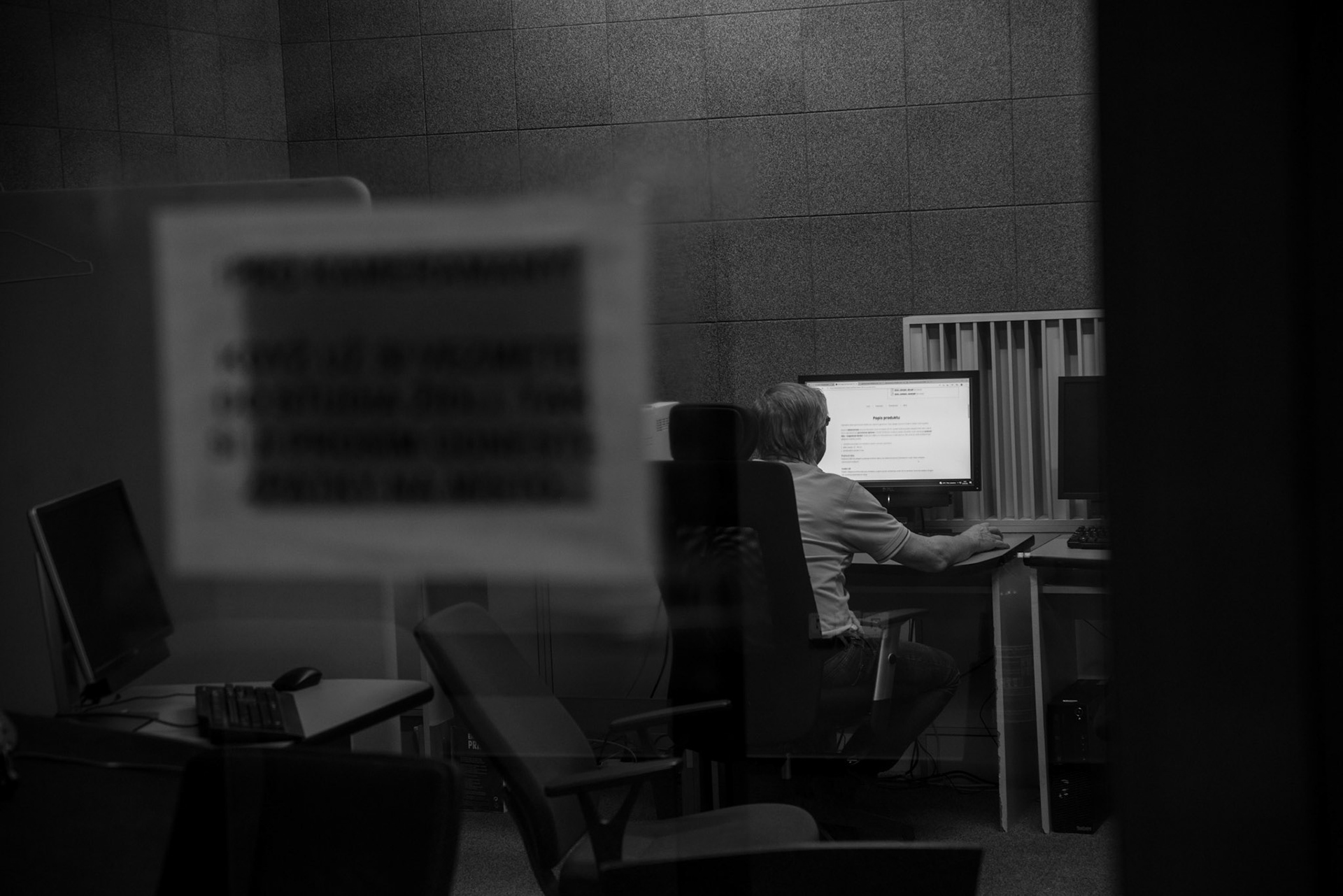 Místo v budově zpravodajství ČT24, kde se dělali výtěry z nosu proti koronaviru COVID19